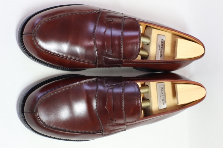 ホーウィン社製のコードバンに比べると見た目もスッキリしていて、色むらやシミも少ない素材ですが、繊細な作りのウエストンのローファーに良くマッチしています。