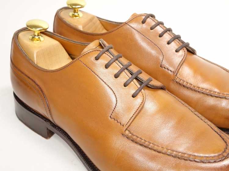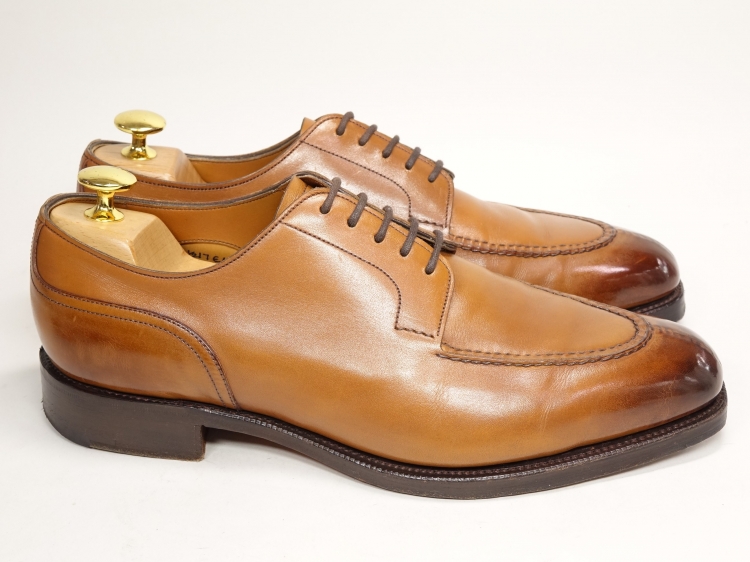 こちらのドーバーはチェスナットで、ライトブラウンの靴は非常に映えるのとエイジングを楽しめるのですが、洋服に合わせると履けるシーズンも短く、コーディネートも難しいカラーです。