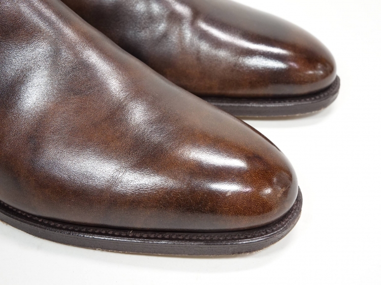 ジョッパーやサイドゴアなどプレーンなブーツはフロント部分にシワが入りやすいのですが、良い革を使っているブランドはキレイに真横にシワが入り、こちらもさすがのジョンロブでキレイなシルエットをしています。