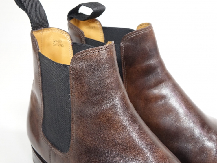 こちらのLAWRYはわりと新しいモデルだと思いますが、ジョンロブの定番サイドゴア TUDORとも似ており、違いはサイドの切り替えとヒール上部分のストラップの形状だと思います。