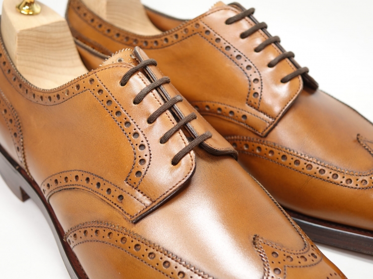 外羽根のダブルソール仕様のため、カントリーっぽい雰囲気になりがちなモデルですが、シャープなラストのため、とっても洗練した印象の一足です。