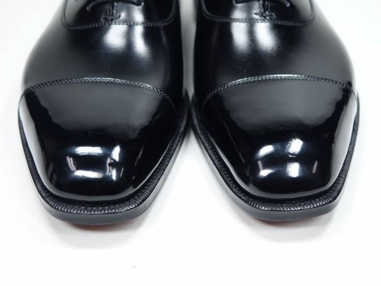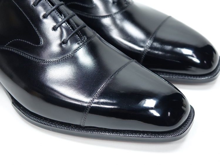 おそらくキメの細やかな質感やシワの入り具合などからカールフロイデンベルグ かと思いますが、漆黒の様なブラックで、「これぞ、ブラックストレートチップ !!」といった印象です。