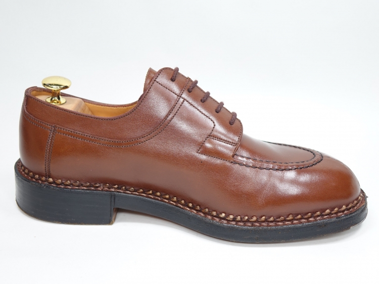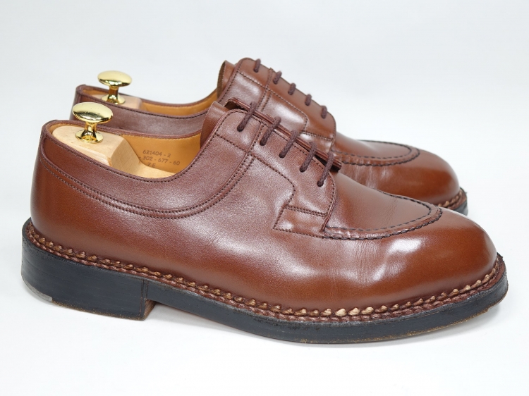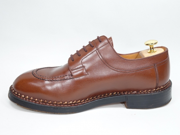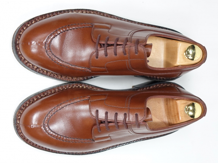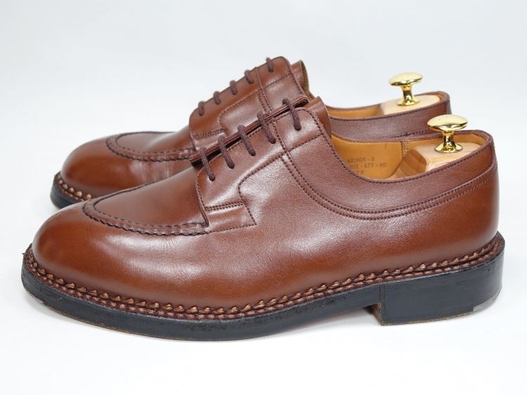 見た目はとても無骨な印象の一足ですが、フロントやコバ周りのステッチなど手仕事の温かみを感じる事が出来、英国靴とは違った素朴さを感じる事が出来る、歴史に残る一足だと思います。