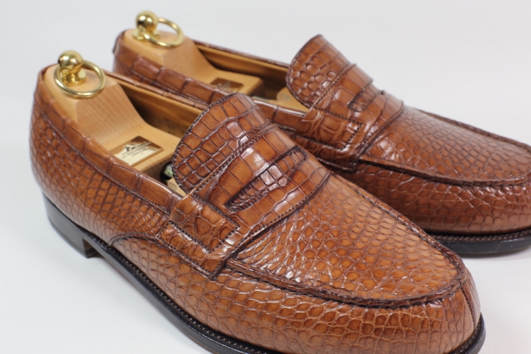 エキゾチックレザーを使った靴は、ちょっとイヤラシイ雰囲気や危ない雰囲気になりがちなのですが、180ローファーの靴は全く嫌味がなく、靴自体の完成度の高さによるものかと思います。