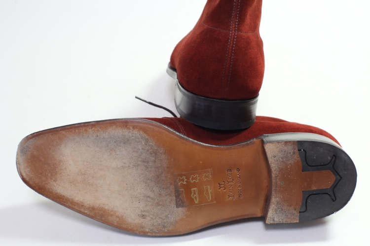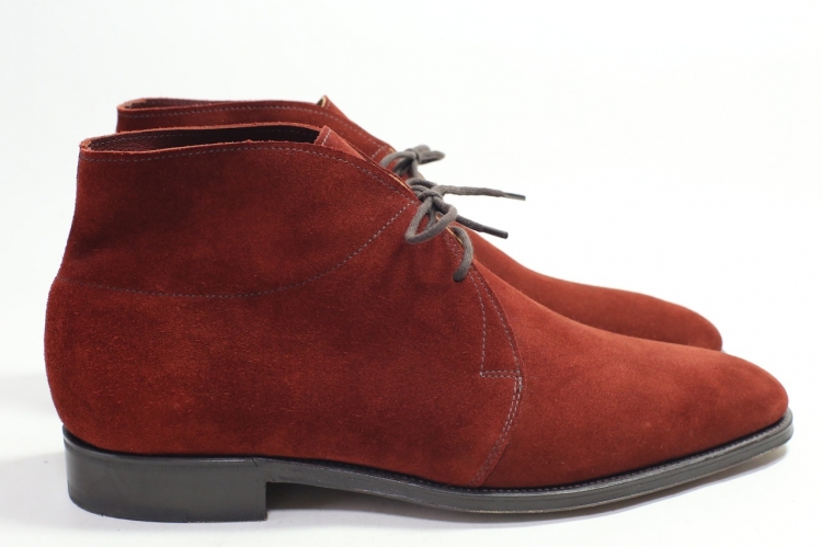 他のブランドのスエードはブラウン、ダークブラウン、ブラックが中心ですが、ジョンロブにはこちらの靴の様に目が覚めるカラーもあるのが強さの秘密の一つだと思います。