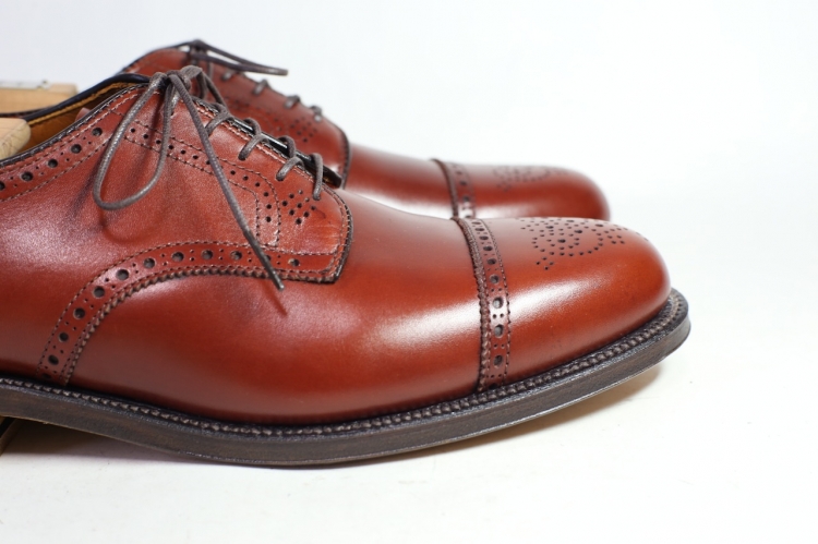 ハワイの名店レザーソウルの別注商品ですが、現行商品ではあまり見かけることのない、赤茶色のカーフを使ったメダリオンキャップトゥです。