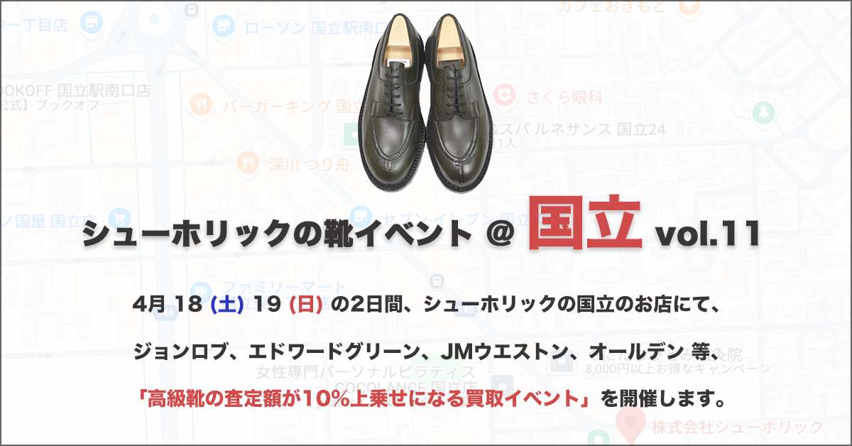 シューホリックは東京でも西の方の国立市にお店があり、ご来店まで時間のかかる都内のお客様向けに都内でも靴の買取イベントを開催しています。