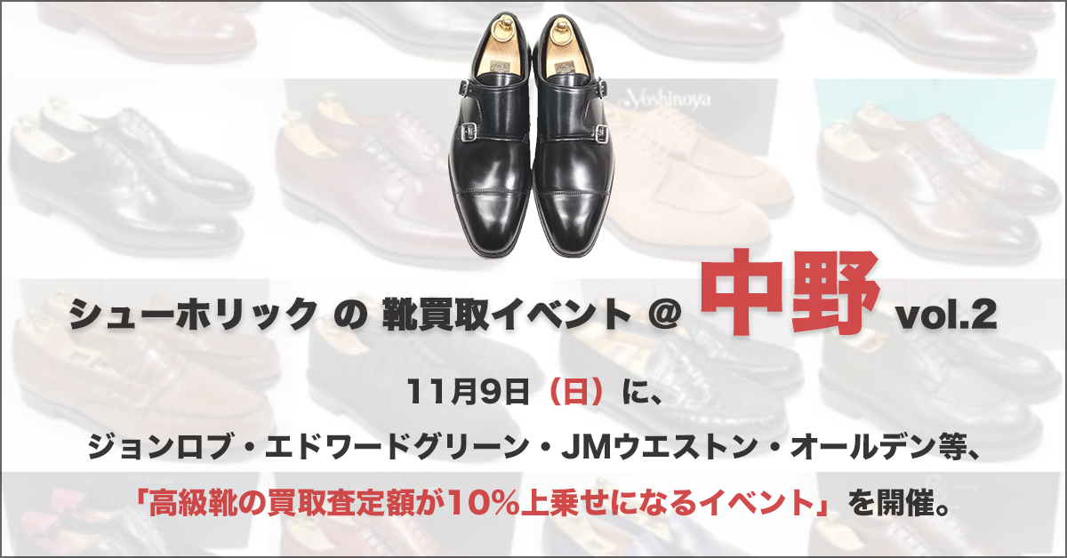今回の会場の「中野イベント」は7月に続き2回目の開催となり、前回のイベントの際には過去最高の来場者数と買取額となりましたが、時間帯によっては混雑により大変お待たせしてしまい申し訳ありませんでした。(私達の予想以上に中野周辺には靴好きのお客様がいらっしゃいました、すみません。。。)